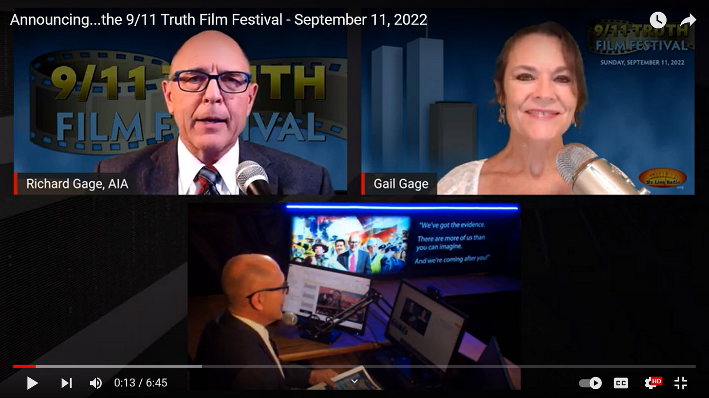 If you missed the 9/11 Film Festival, co-produced by RichardGage911 and NoLiesRadio then this is your chance to catch up. Gail and I will be waiting for you there!