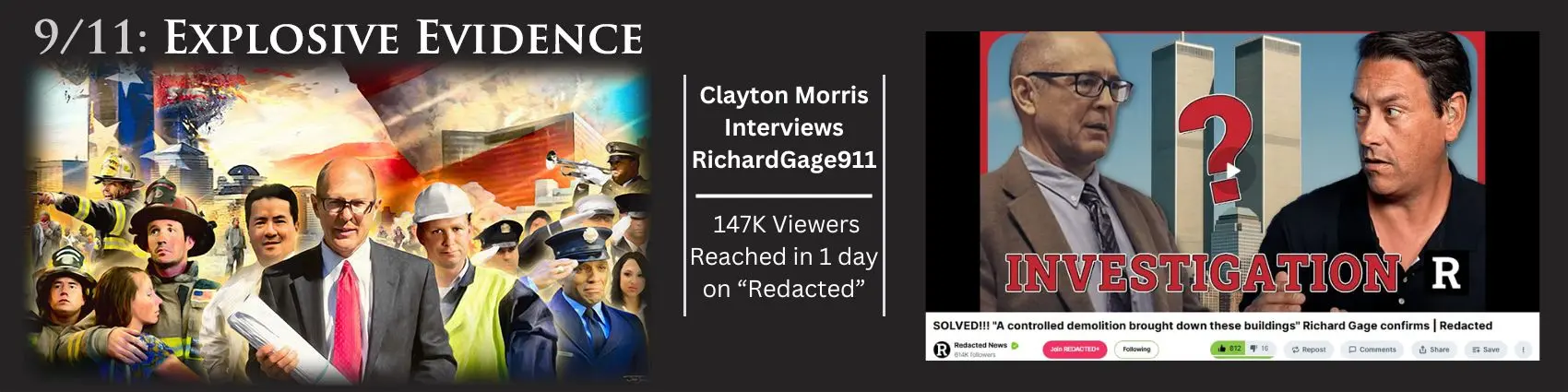 We thank each of you who contributed to our successful fundraising campaign to hire a top PR consultant to get us out there. And itโs working!!We got on Jimmy Dore with 345K Rumble subscribers, garnered 44.6K views, and got 923 thumbs-up! Now, here on Redacted, which has 2.7M YouTube subscribers, we have already reached 216K views with 17K thumbs up and 3.5K very positive comments โ all in one day! The truth of 9/11 is finally Turning the Tide!