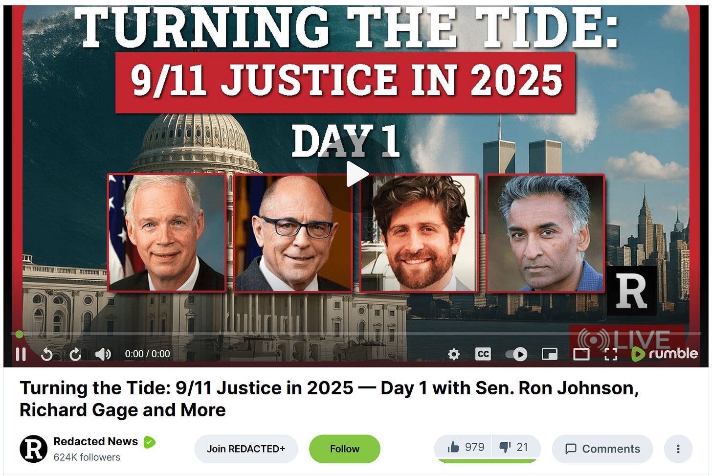 Or watch Day 1 below on Rumble with 266K views!